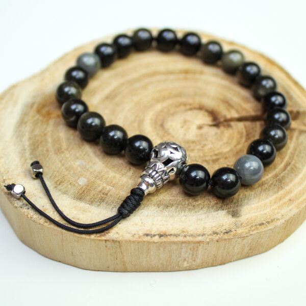 Lśniąca powierzchnia obsydianu, zwłaszcza czarnego, złocistego i tęczowego wspiera duchowe wglądy i rozwój wewnętrznego mądrości.