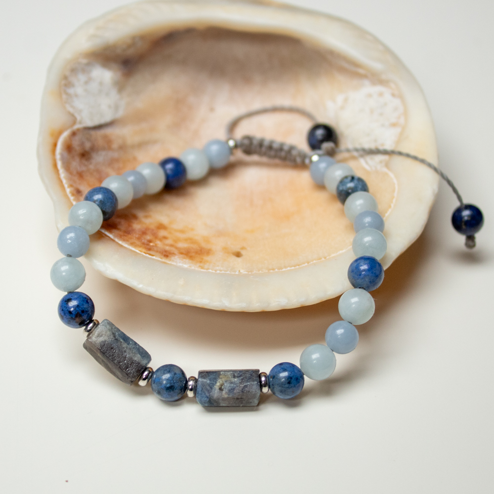 To harmonijne połączenie szafiru, akwamarynu, dumortierytu i angelitu tworzy talizman, który ułatwia wyrażanie własnej prawdy i komunikację z poziomu serca. Każdy kamień dopełnia się wzajemnie, budując Twoją pewność siebie i spokój.