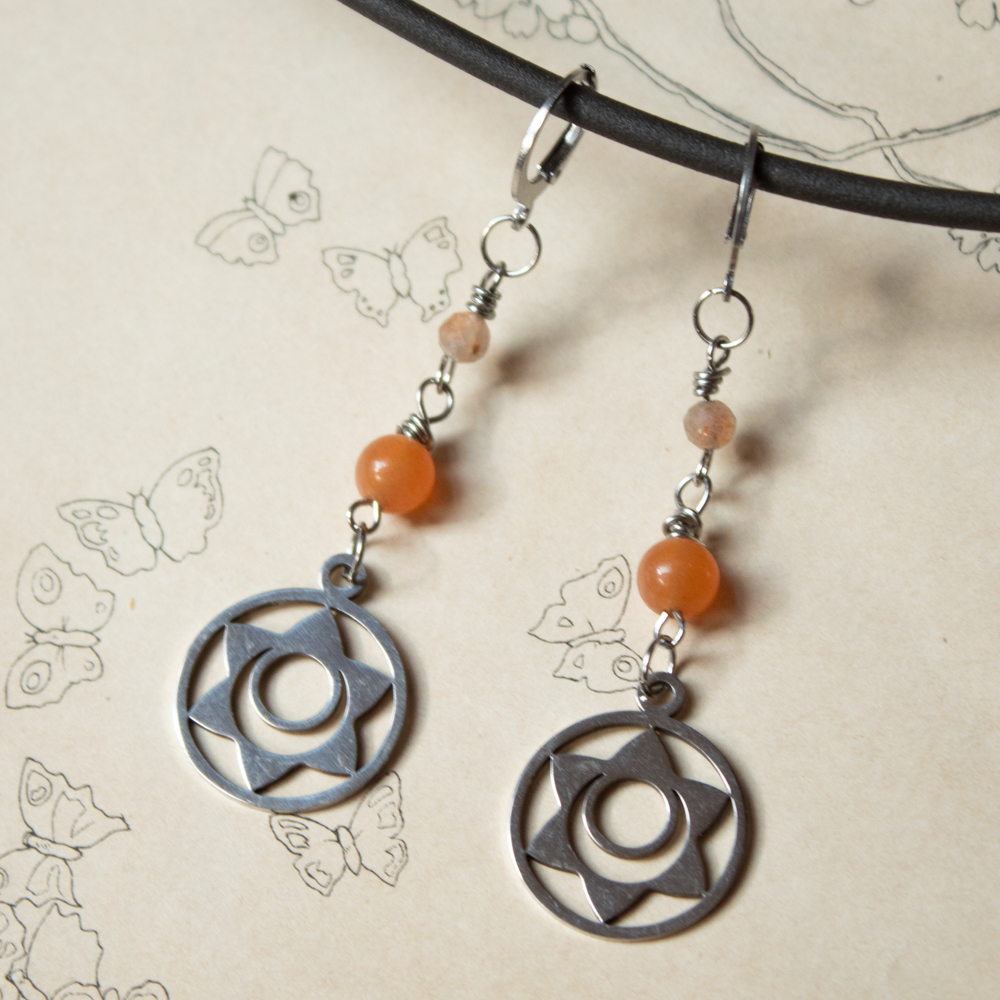 Kolczyki Kamień Słoneczny i Pomarańczowy Awenturyn – Czakra Sakralna. Stal
